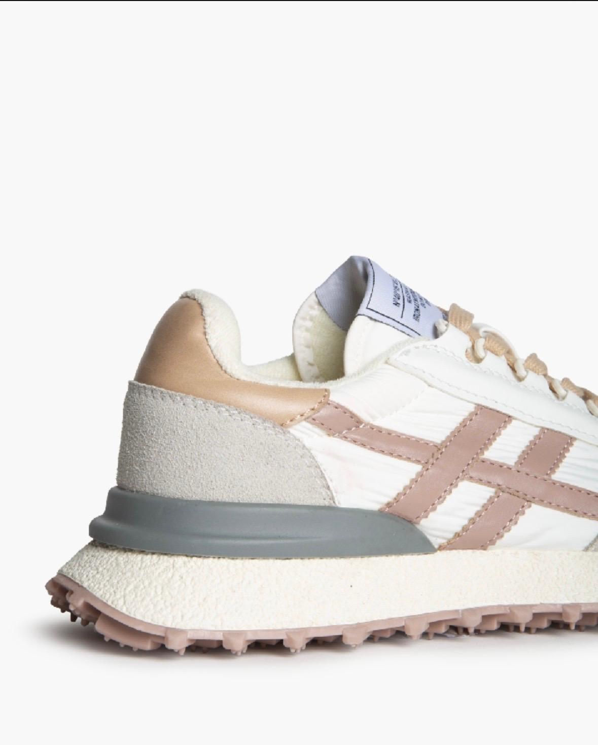 Deportivo suela track. De tela, en color blanco, combinando perfiles en colores pastel. Muy muy cómodas y blanditas.
