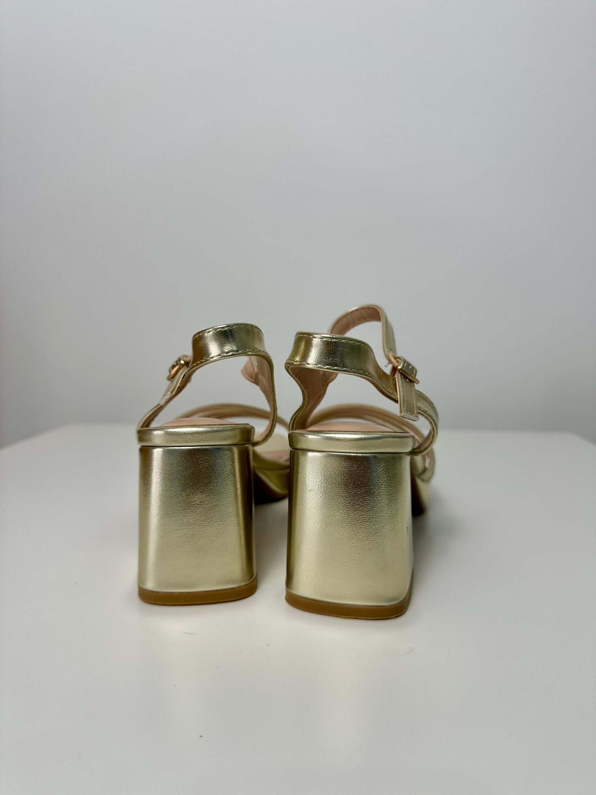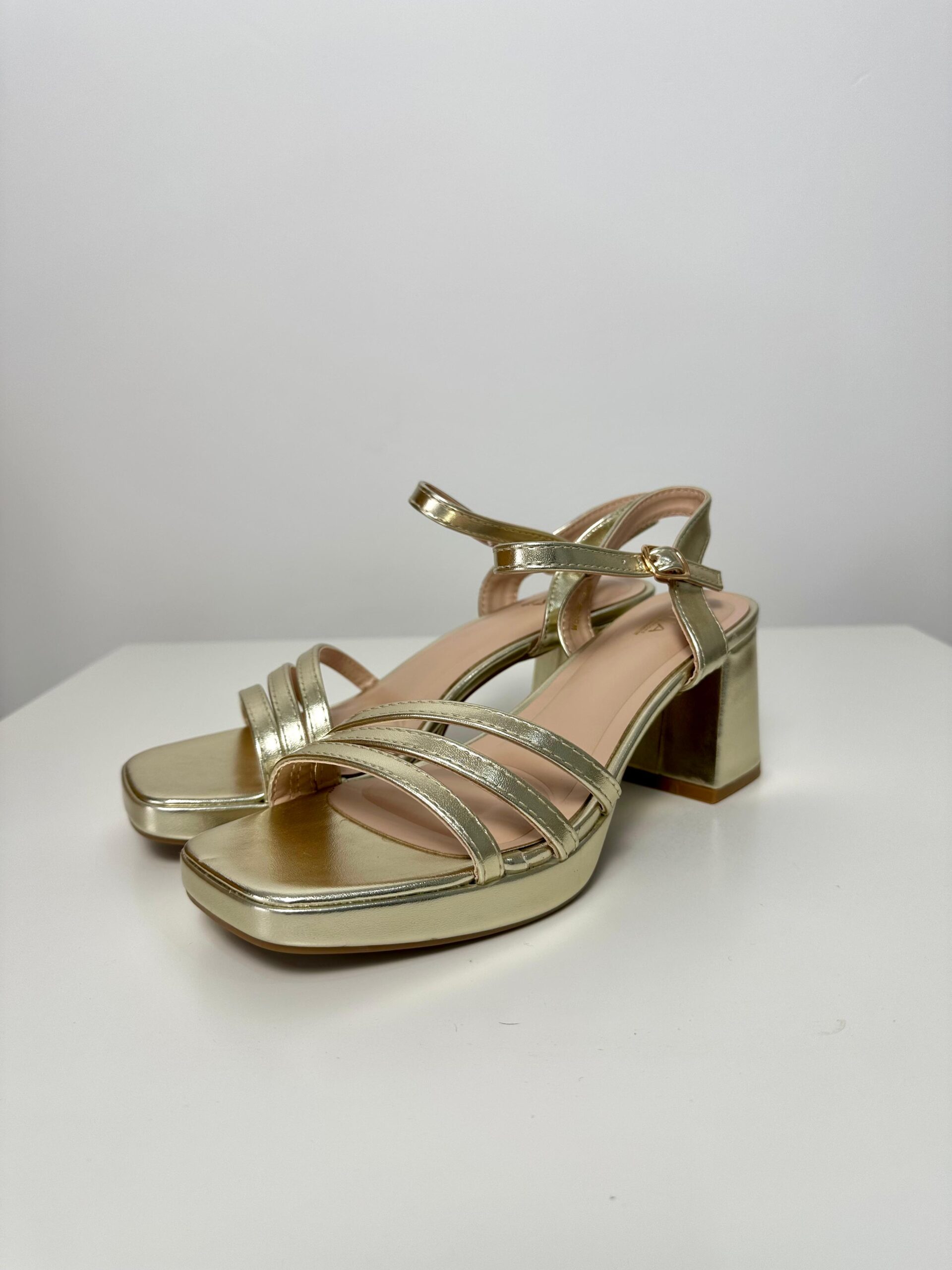 Sandalia de plataforma dorada, con tacón 7cm y plataforma 2,5 cm.