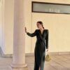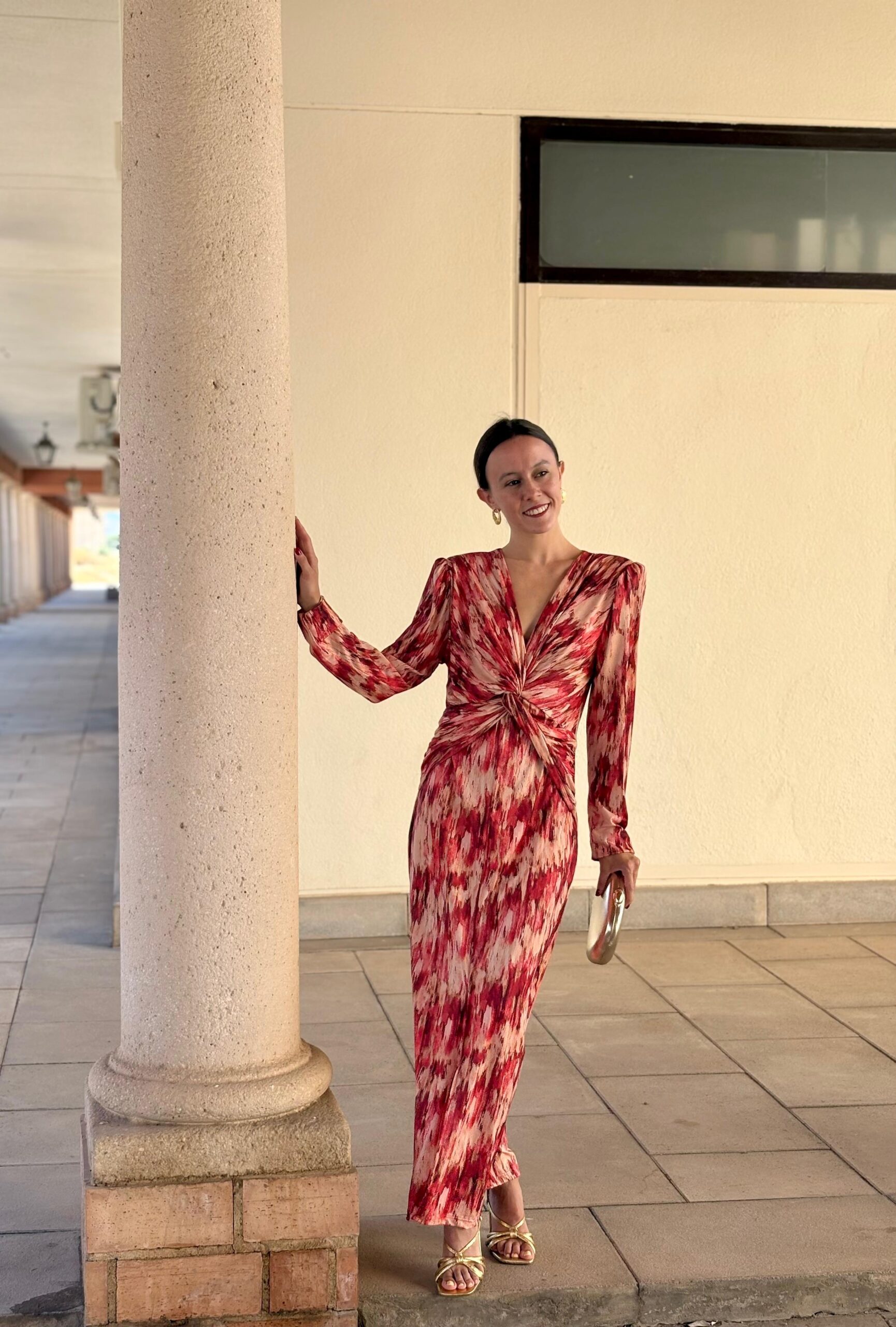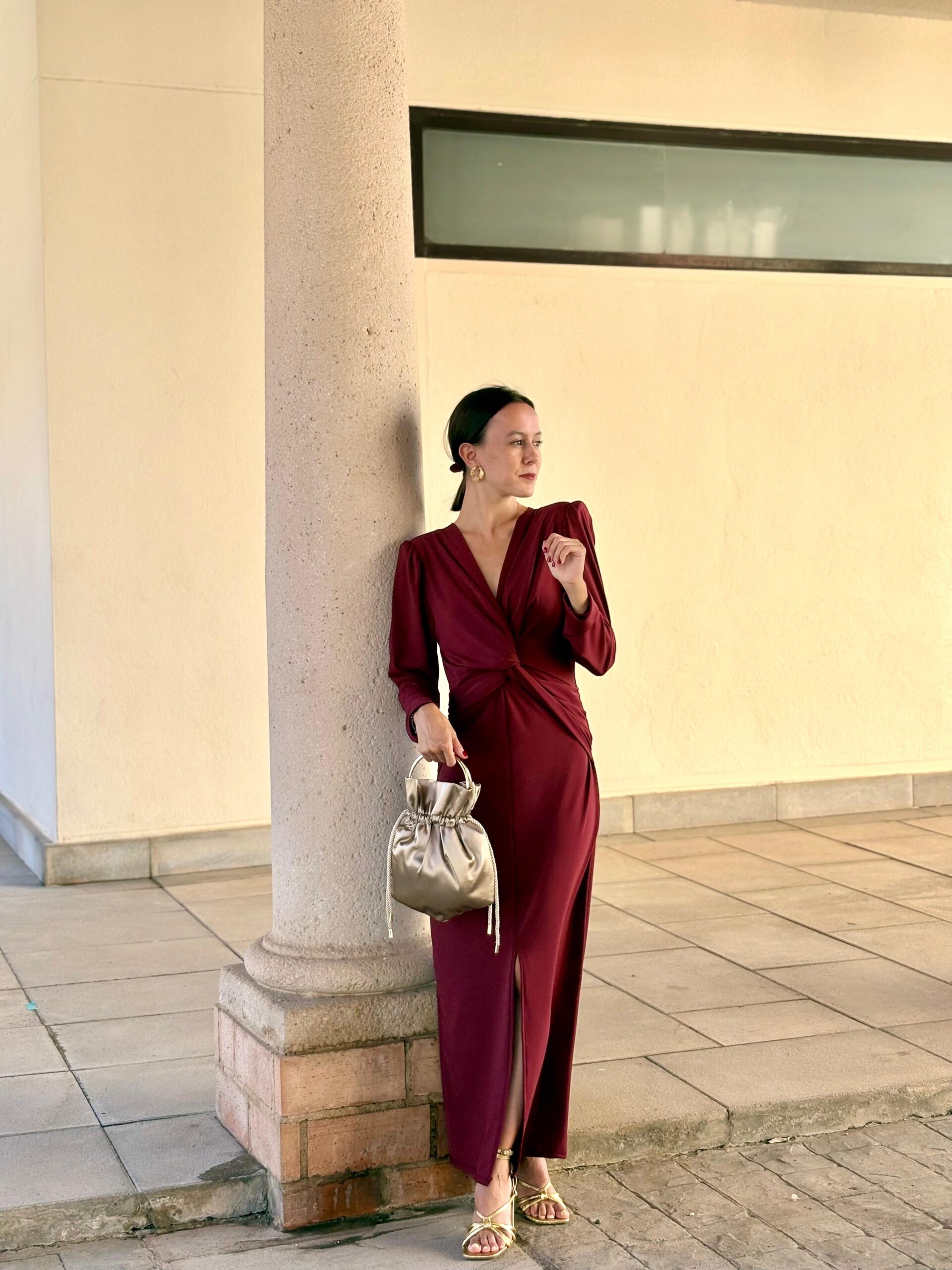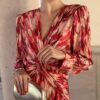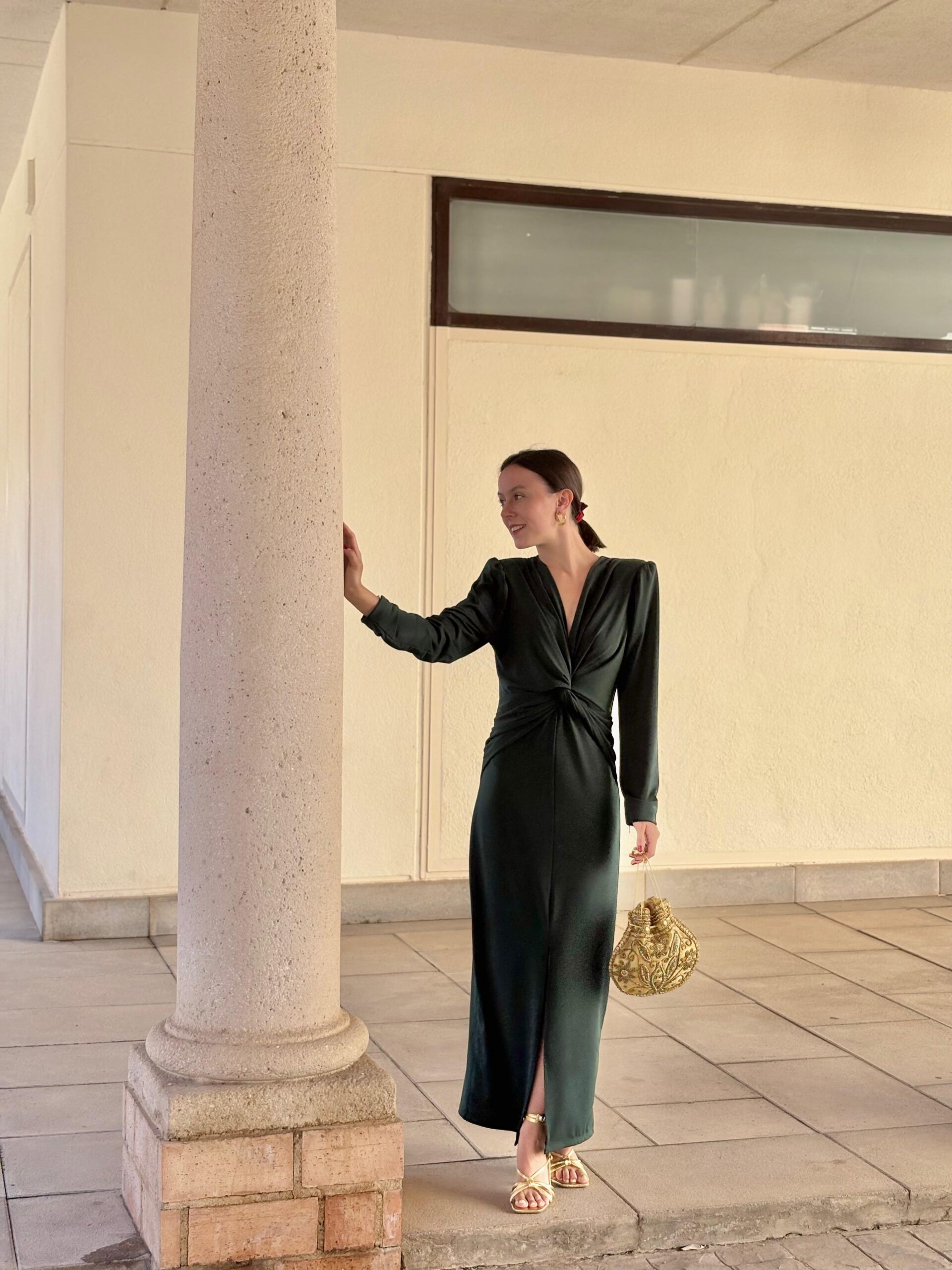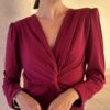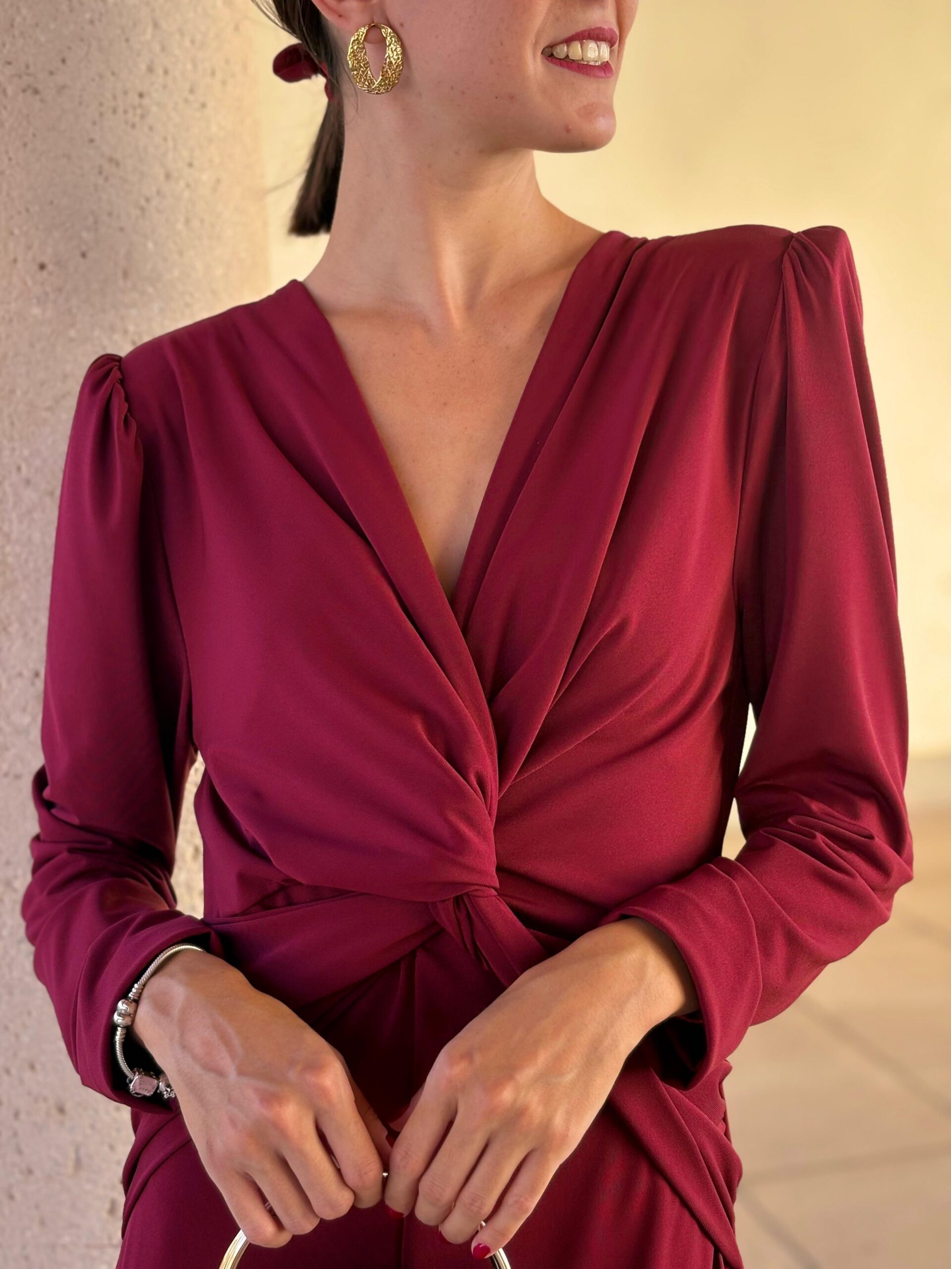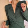 Vestido de punto lycra, elástico. Nudo debajo del pecho, con escote en V. Largo midi. Disponible en tres colores. Talla única.
