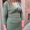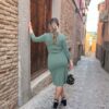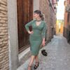 Nuestro vestido Potes está confeccionado en crepe elástico color verde.