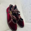 Mercedita terciopelo burdeos, con tiras a modo de sujeción en color choco. Suela de goma. Muy cómodas y blanditas.