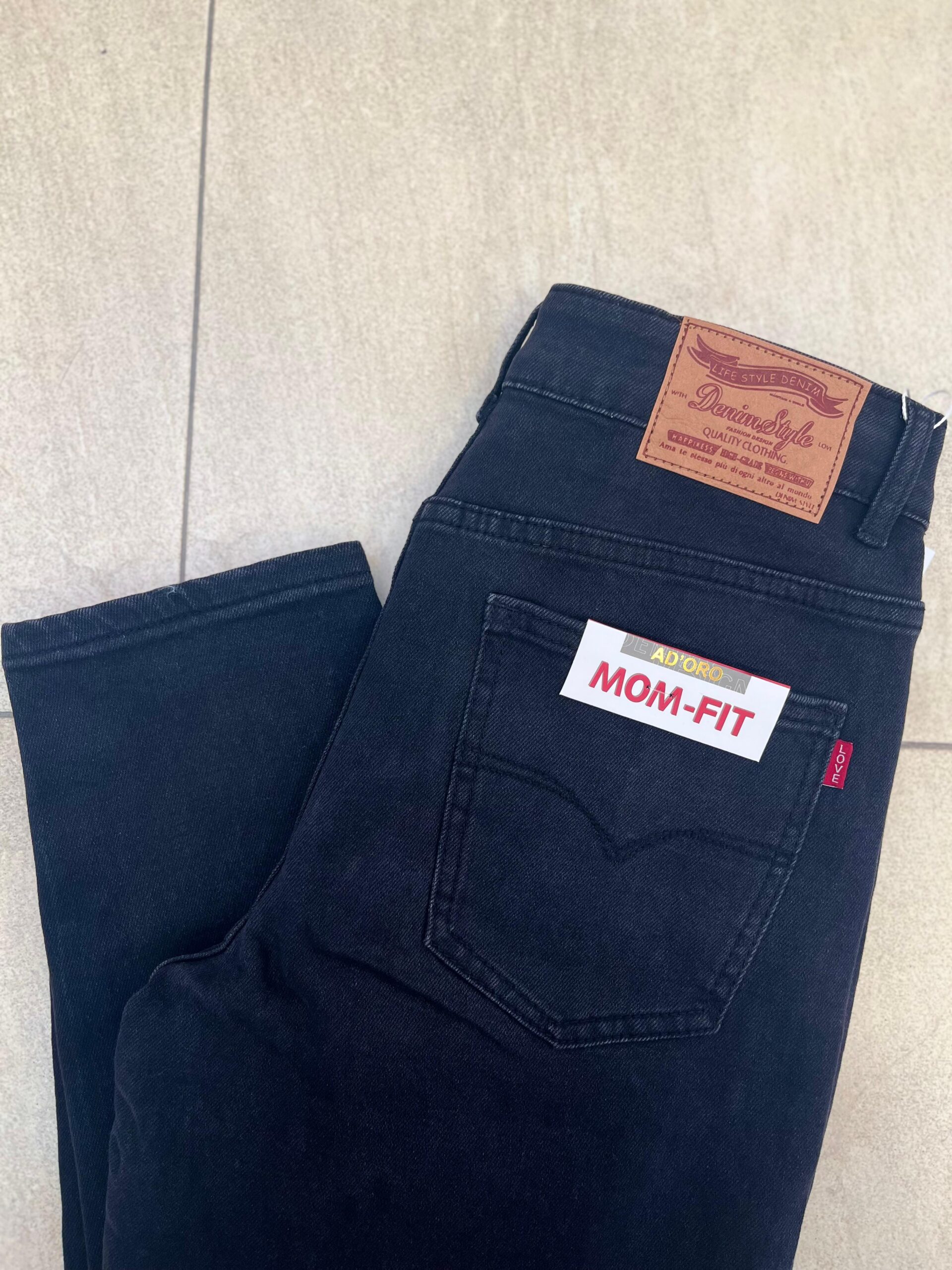 Vaquero estilo mom, color negro. Tiro alto. Elástico.
