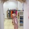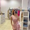 Vestido confeccionado en bambula estampado. Fondo beige y estampado en rosa y azul. Talla única.